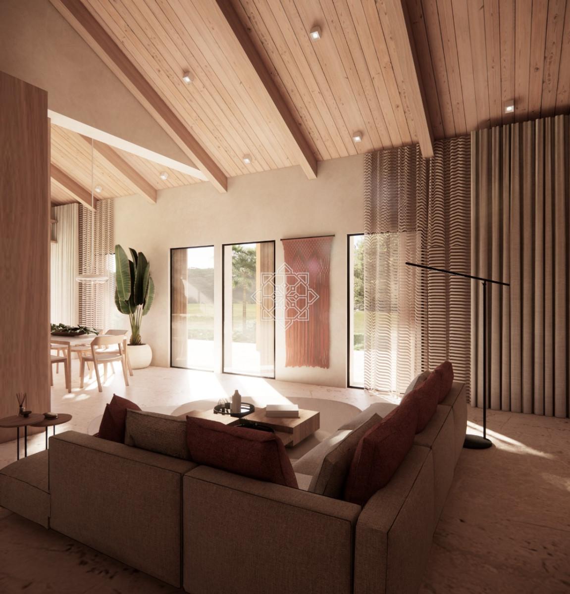 This unique bungalow with a basement is currently undergoing a full refurbishment, blending the timeless charm of a traditional Algarve quinta with sleek, modern interiors. Designed with sophistication in mind, the property features a striking double – height ceiling that creates a sense of light, space and elegance throughout.