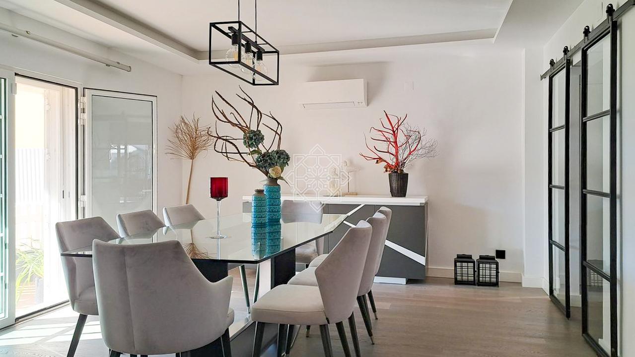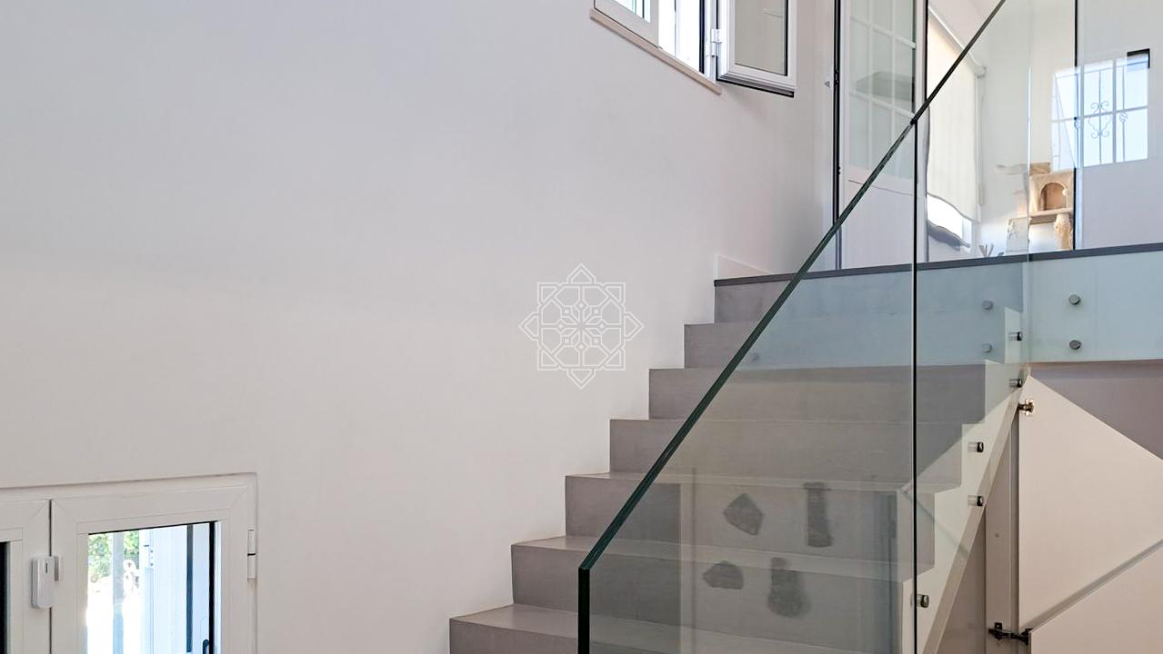This property is designed with comfort in mind, featuring wooden flooring throughout and cutting-edge technology to ensure maximum comfort and convenience. The intelligent lighting system, photovoltaic panels with battery storage, solar-powered water heating and central air conditioning ensure a consistently pleasant environment. In colder months, a wood-fired heat exchanger provides an additional source of warmth.